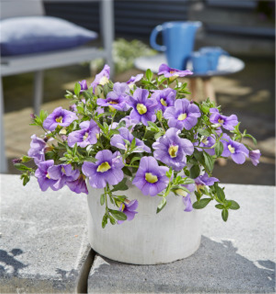 Das aus Südafrika stammende Mittagsgold öffnet seine Blüten nur an sonnigen Tagen vom Vormittag bis zum frühen Nachmittag. Diese Verhaltensweise hat ihr ihren deutschen Namen eingebracht. An bedeckten Tagen und bei Regen können Sie die Blüten leider nicht bestaunen. Die Pflanze muss an ihrem sonnigen Standort regelmäßig gegossen werden, dann blüht sie den ganzen Sommer unermüdlich weiter. Greifen Sie für Ihre *„BLAUE BRISE!“* im Garten auf ein Exemplar in Cremeweiß zurück.