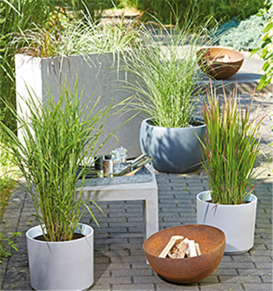 Das Chinaschilf und das Flammengras sind in Asien beheimatet. Sie fühlen sich bei uns an einem sonnigen bis halbschattigen, geschützten Standort im Garten mit humosen, durchlässigen Boden sehr wohl. Gießen Sie im 1. Pflanzjahr regelmäßig, in den späteren Jahren dann nur bei Trockenperioden. Auch in Kübeln auf Balkon oder Terrasse machen sie sich gut. Besonders hohe Gefäße betonen die Optik der in den Himmel strebenden Gräser. Das Flammengras macht seinem Namen alle Ehre. Es beeindruckt schon ab dem Sommer mit einer roten Färbung seiner Halme, die im Herbst sogar noch intensiver wird.