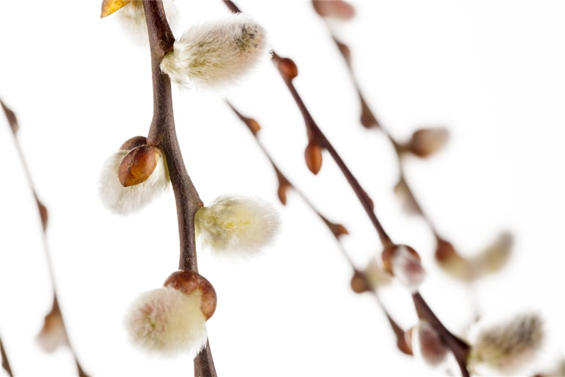 Die Kätzchen-Weide gehört auch zu den Frühlingsboten. Auch wenn ihre „Kätzchen“ eher plüschig und gut eingepackt aussehen, ist Ostern ziemlich nahe, wenn die Kätzchen-Weide blüht. Die Kätzchen-Weide hat zwei Gesichter: einzelne Pflanzen tragen entweder nur männliche oder nur weibliche Weidekätzchen. Die männlichen Blütenstände sind in der Regel größer und sind über und über mit gelben Staubgefäßen bedeckt. Die weiblichen Weidekätzchen sind silbergrau.